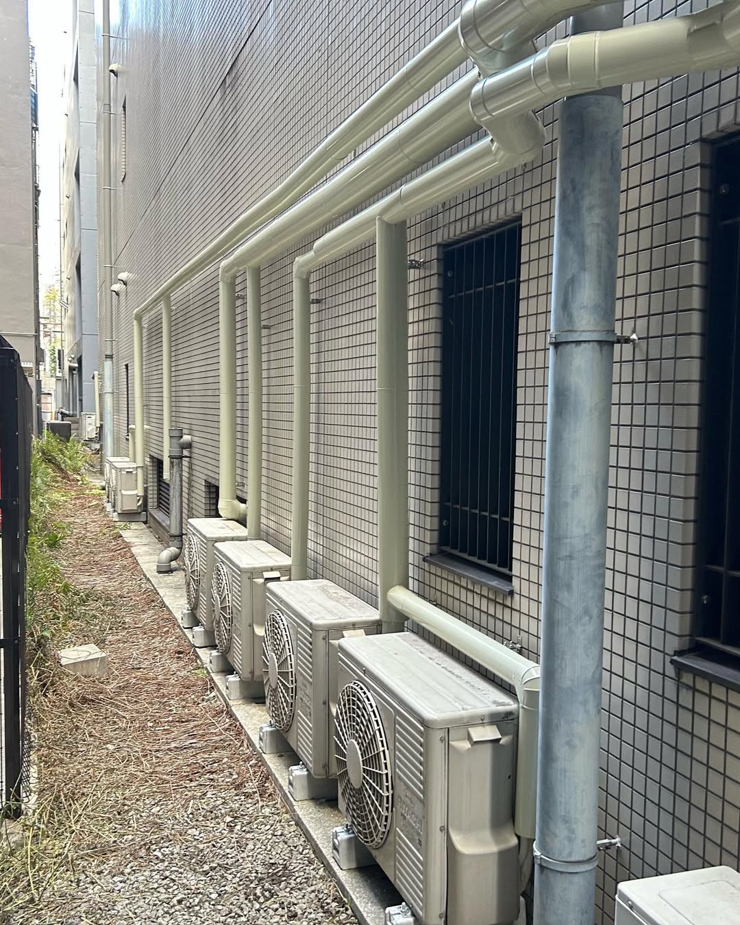この事例は、消防法の規定により室外機の設置場所を変更する必要が生じたため、移設工事をご依頼いただきました。お客様の店舗の定休日を利用した1日での完工が必須条件。事前に入念な先行配管作業を行い、当日は朝